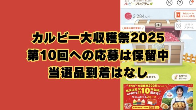 耳寄り情報 カルビー大収穫祭2025、第10回への応募は引き続き保留中。今回の当選品到着はなし 2025年11月30日 jump-fire-man とりあえず退職しちゃいました実録 美味しいじゃがいも2kgの抽選がほぼ毎週行われる『カルビー大収穫祭2025キャンペーン』の開催期間中です。 現在は第10回応募期間に入 …