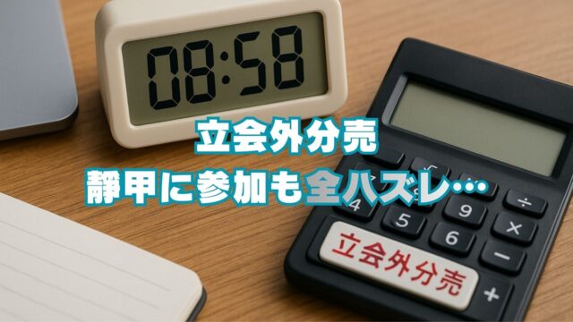 株式投資 立会外分売靜甲に参加も全ハズレ 2026年3月4日 jump-fire-man 退職後の不安定な収入・資産を補うため実践している中の1つが「立会外分売への参加」。 私自身は2022年から本格的に参戦開始。 実践歴は浅いにも関わらず、特に『始値売却を …