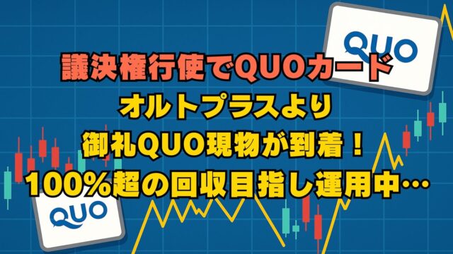 株式投資 議決権行使でオルトプラスの現物クオカード到着 2026年3月28日 jump-fire-man 議決権行使でもれなくQUOカードがいただけていた情報のあった銘柄で、元本回収・逃げ切りを狙ってみるシリーズ。 「3672 オルトプラス」から株主総会で議決権を行使すると御礼と …