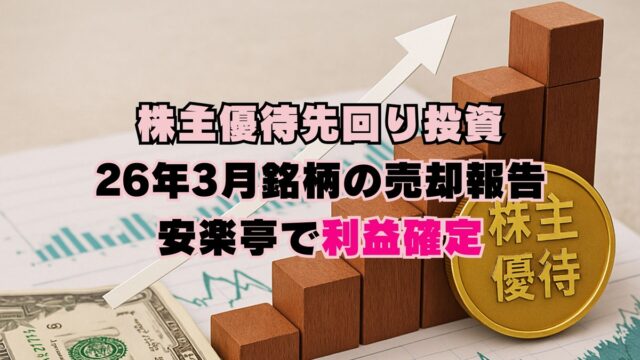 株主優待先回り投資 株主優待先回り投資、26年3月銘柄の売却結果報告。安楽亭で利益確定 2026年4月3日 jump-fire-man 2022年10月より開始した「株主優待先回り投資」。 26年3月権利銘柄「7562 安楽亭」の売却報告です。 23年3月から連続 …
