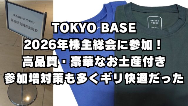 株主優待取得 TOKYOBASE、2026年も株主総会参加で豪華お土産あり! 2026年4月9日 jump-fire-man 2026年1月末権利を取得していた「3415 TOKYO BASE」。 株主優待内容は自社オンラインストア・店舗で利用出来る金券ですが …