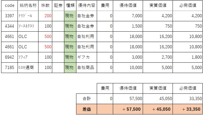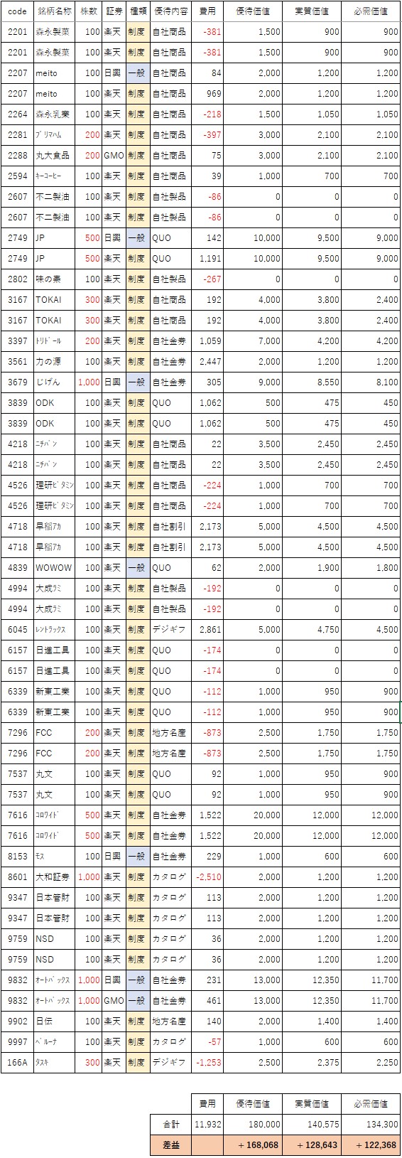 空クロス銘柄達もすべて配当差益でむしろ黒字化出来てしまいましたし、JPといった高額金券系もしっかり抑えることが出来ました。