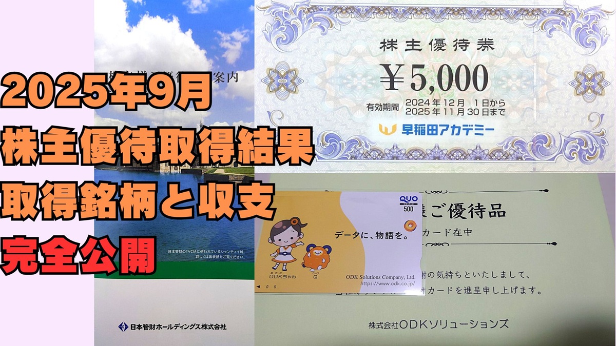 2025年9月に私が取得した株主優待銘柄と収支完全公開