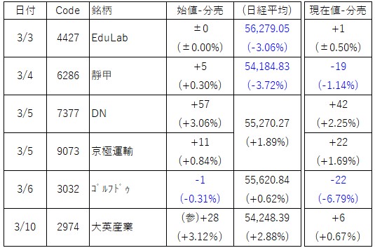 3月初旬の立会外分売プチラッシュの結果