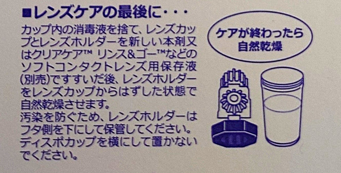 さらに、レンズ装着後も保存容器を消毒液ですすいで自然乾燥する方法が推奨されています。