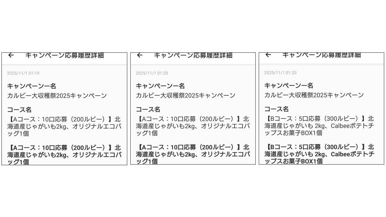 カルビー大収穫祭2025キャンペーン第8回に応募完了