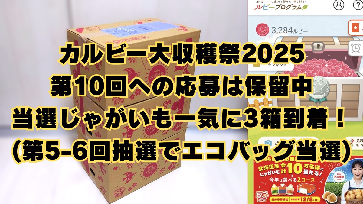 カルビー大収穫祭2025、第10回への応募は保留中。当選じゃがいもが同時到着、今年累計5箱に!