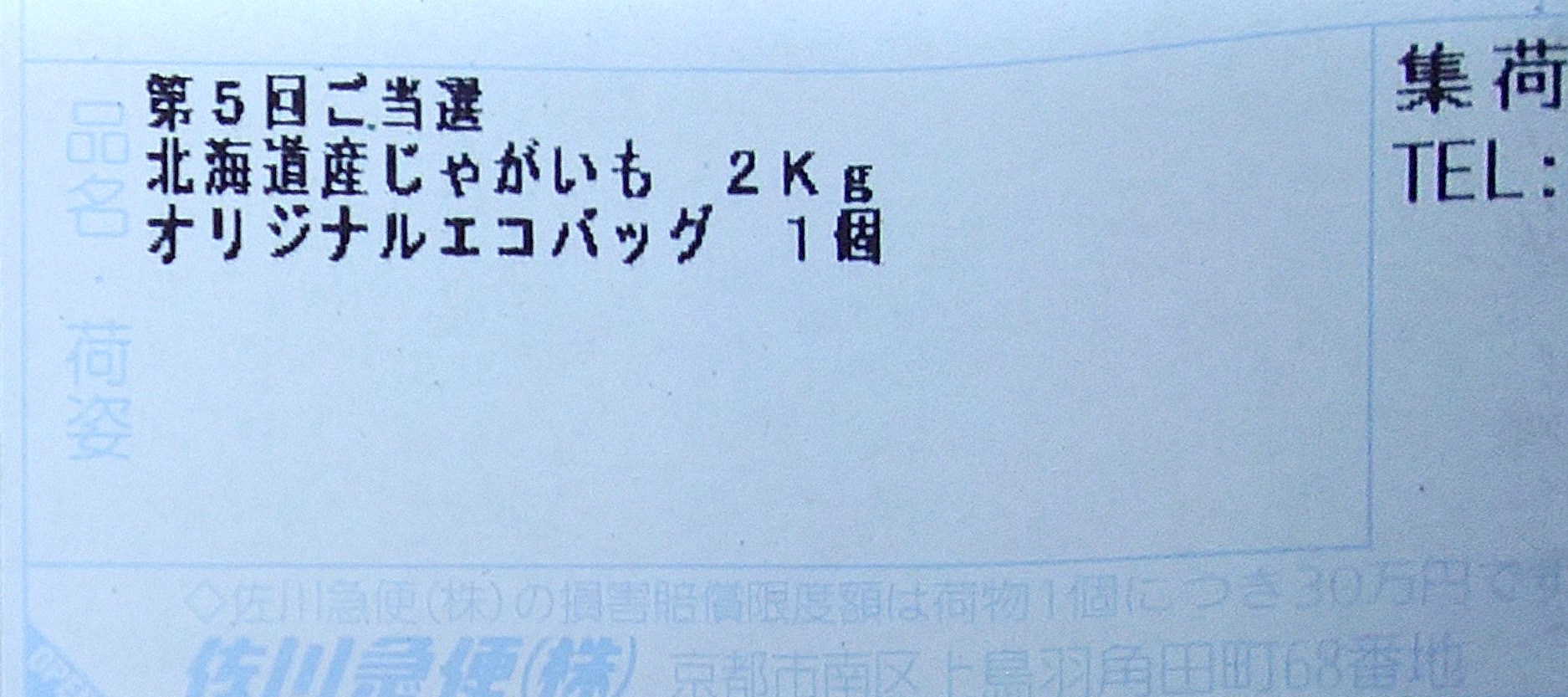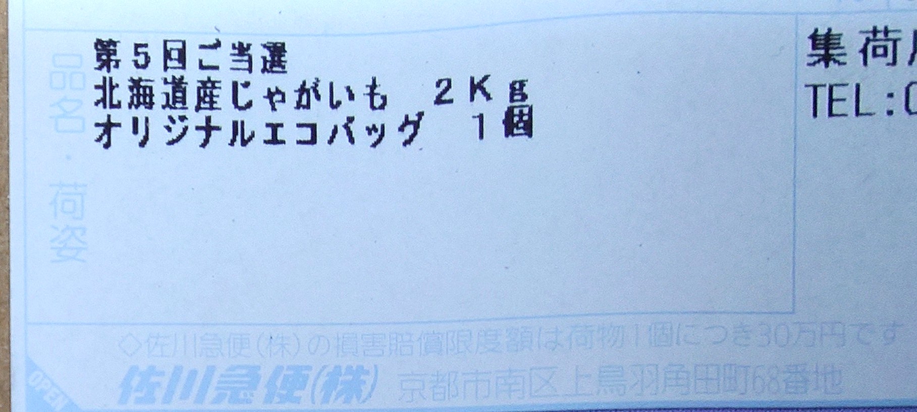 また、第5-6回抽選エコバッグコースで当選し、美味しいじゃがいもが届きました!