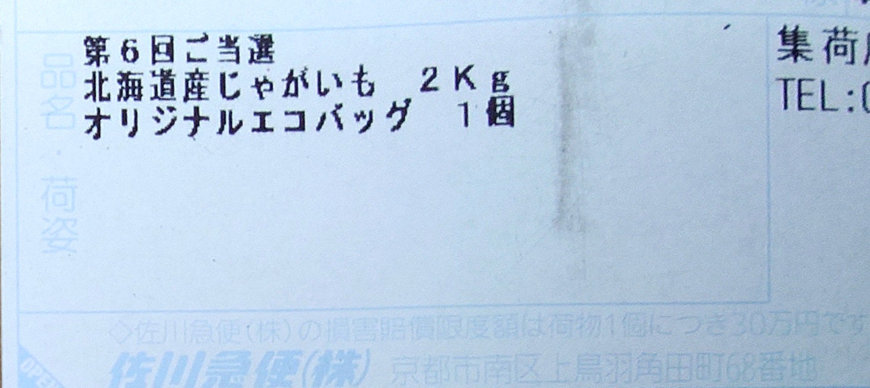 ラベルの品名欄で第5回抽選分の当選品×2第6回抽選分の当選品と分かりました↓
