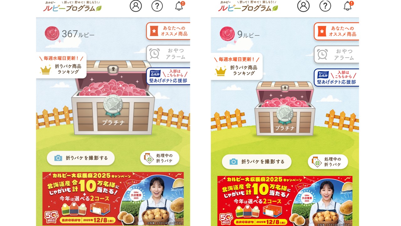 美味しいじゃがいも2kgが賞品となっている『カルビー大収穫祭2025キャンペーン』、第10回への応募は保留し貯ルビー中です。