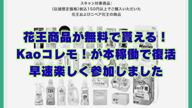 耳寄り情報 花王商品が無料でいただけるKaoコレモ!が復活!今回も楽しく参加 2025年12月8日 jump-fire-man とりあえず退職しちゃいました実録 2025年2月に初登場し、人気殺到であっという間に終了してしまったキャンペーン 『Kaoコレモ!』が12月3日より復活しています…! …