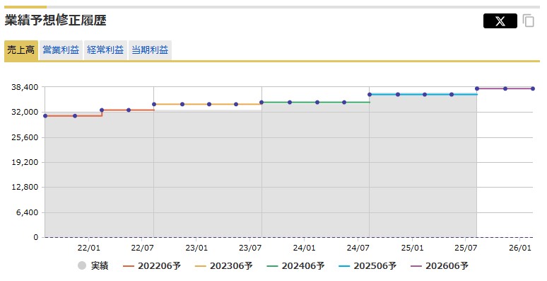特に営業益が3Q-4Q偏重なので進捗が問題ないのか?分かり辛いですが、過去の修正履歴・予実実績を見ると、売上に関してはかなり精度良さそう↓