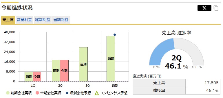 その売上はというと2Q進捗46.1%↓