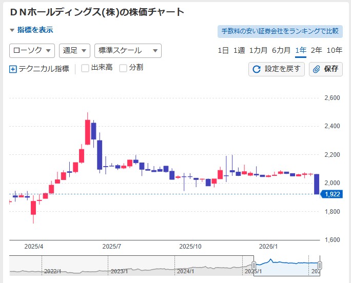 DNホールディングス 立会外分売当日の値動き