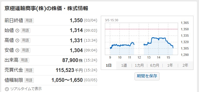 京極運輸商事 立会外分売当日の値動き