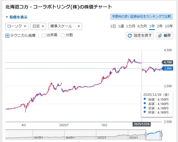 6月権利銘柄の採用候補①、北海道コカ・コーラボトリング。過去の推移は?