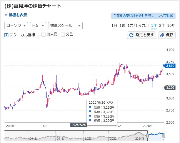 続いて高見澤、過去の推移データです↓