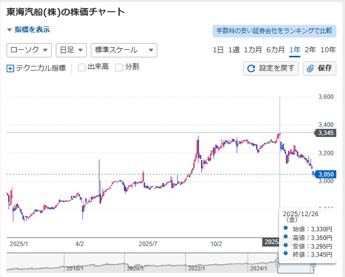東海汽船、過去の推移データです↓