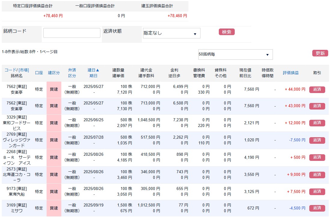 9月権利銘柄「7562 安楽亭」はしっかり含み益状態。