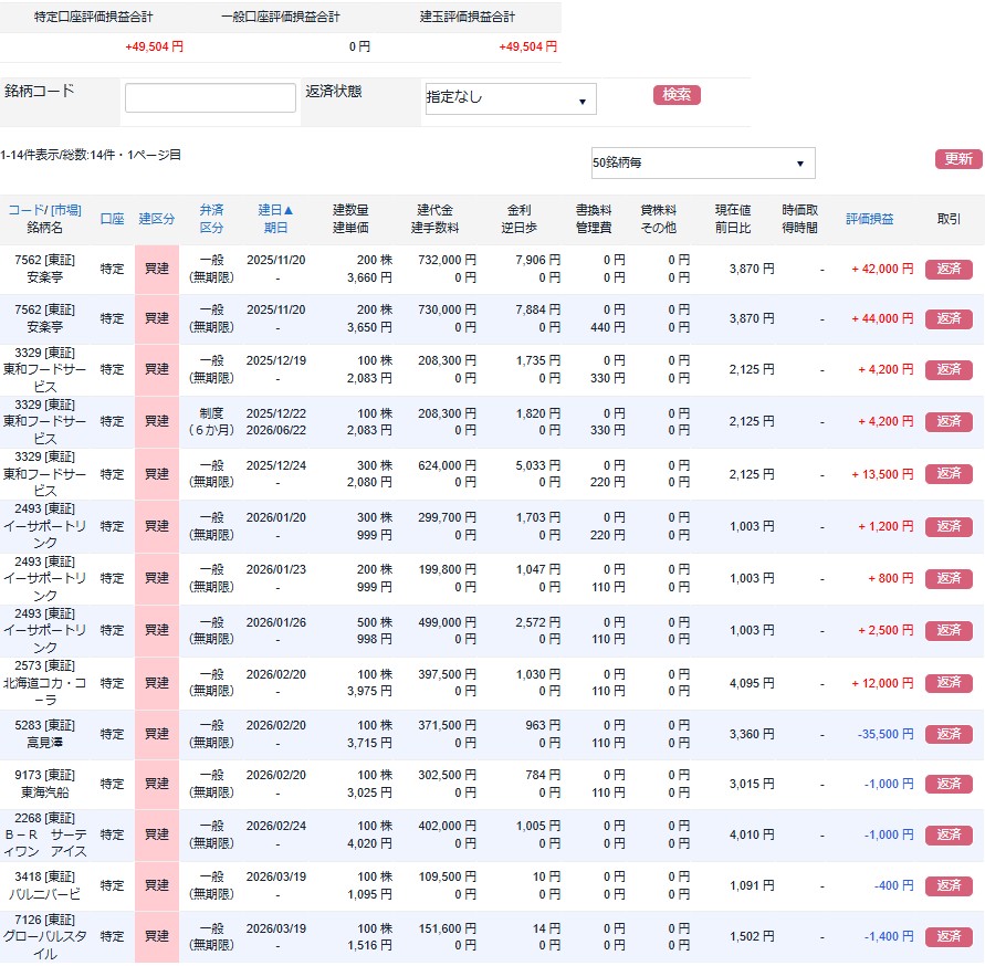 信用取引諸経費込で5%弱の含み益ではありますが、このままいけばありがたい利益確定が出来そうです。