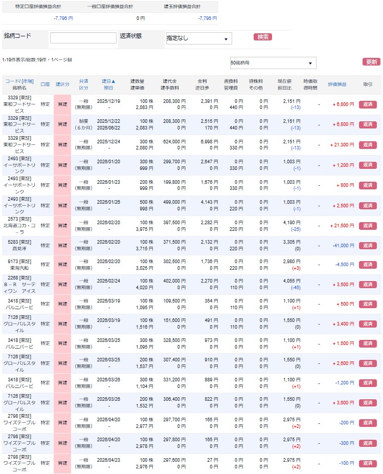 4月末権利付最終日は4/27(月)ですが、その前営業日である4/24(金)までに「8月権利株主優待銘柄を先回り購入」というルールで運用しています。