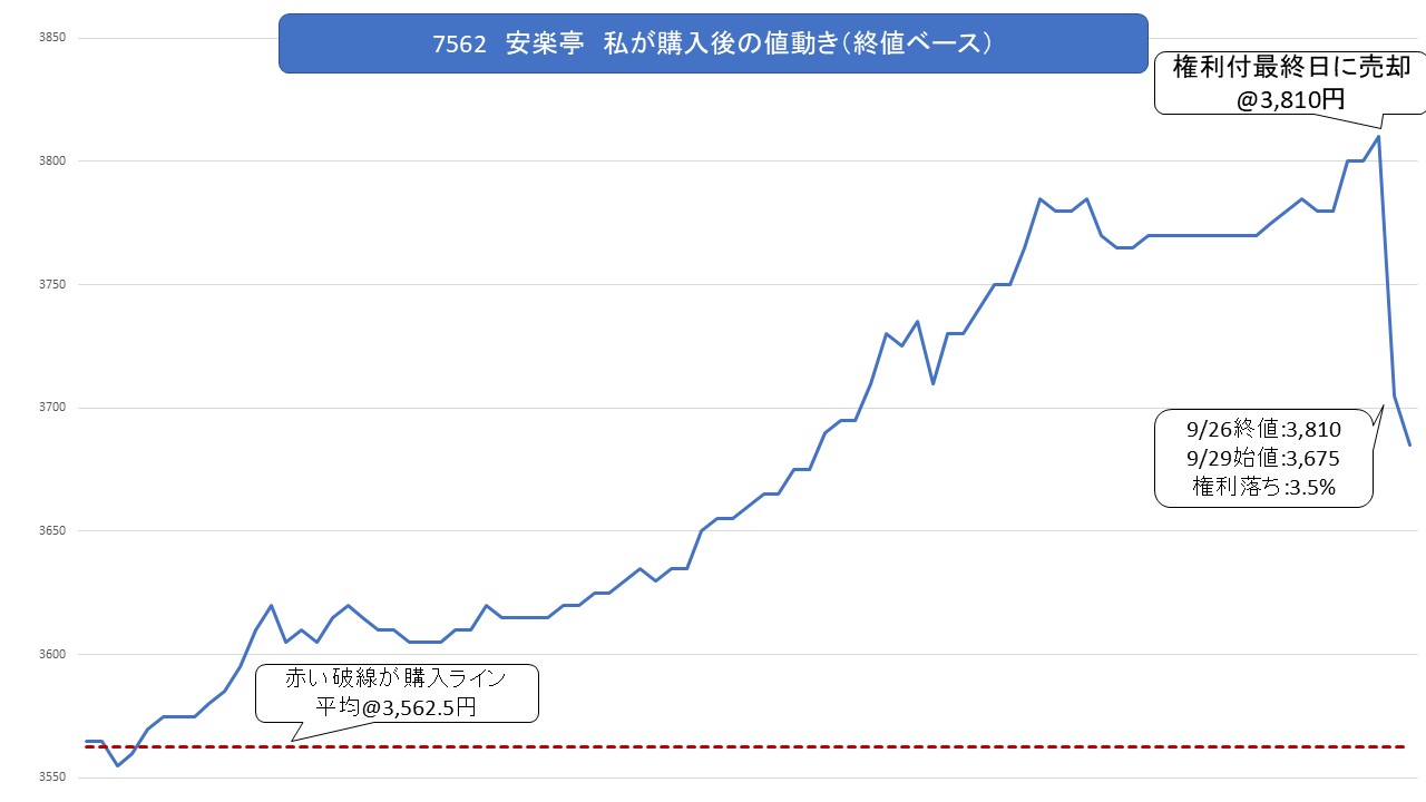 25年9月権利銘柄「7562 安楽亭」の売却報告です。