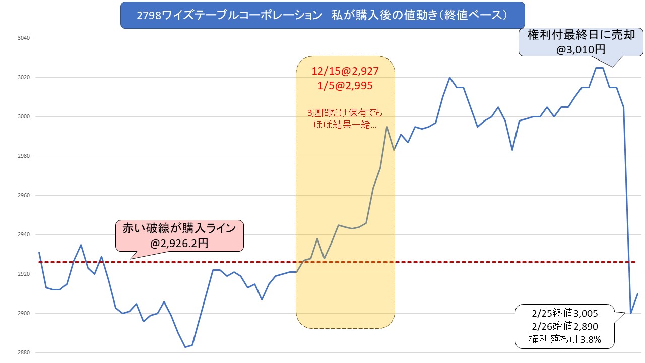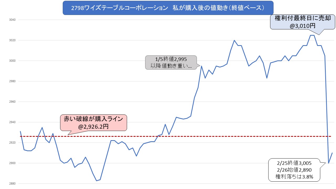 26年2月権利銘柄「2798 ワイズテーブルコーポレーション」の売却報告です。