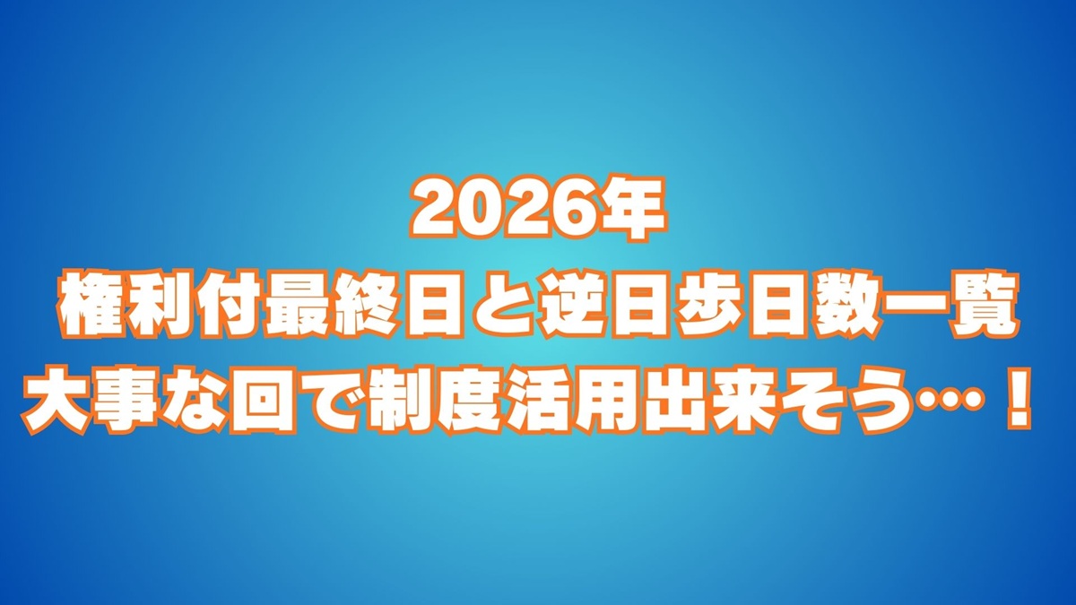 株主優待を取得するために非常に重要となる『権利付最終日』と『逆日歩日数』について、2026年分を確認しておきましょう。
