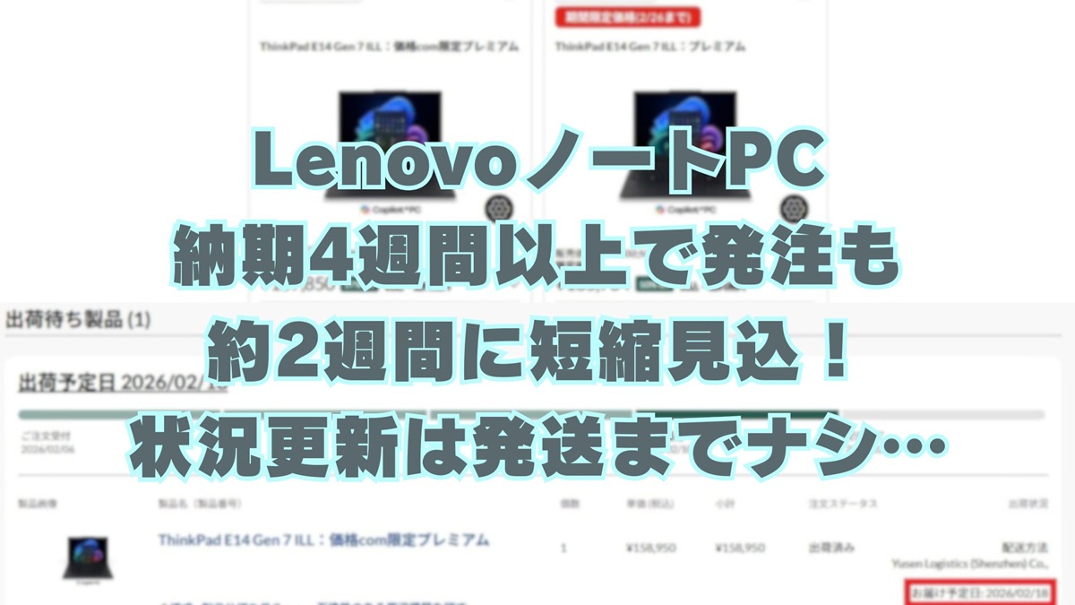 LenovoノートPC、当初納期4週間→2週間に短縮された