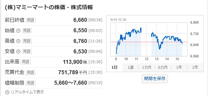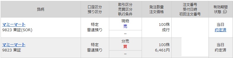 9/19(金)は「9823 マミーマート」の立会外分売実施日でした。