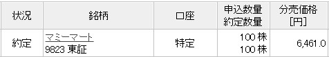 立会外分売 マミーマートに参加し4枚獲得