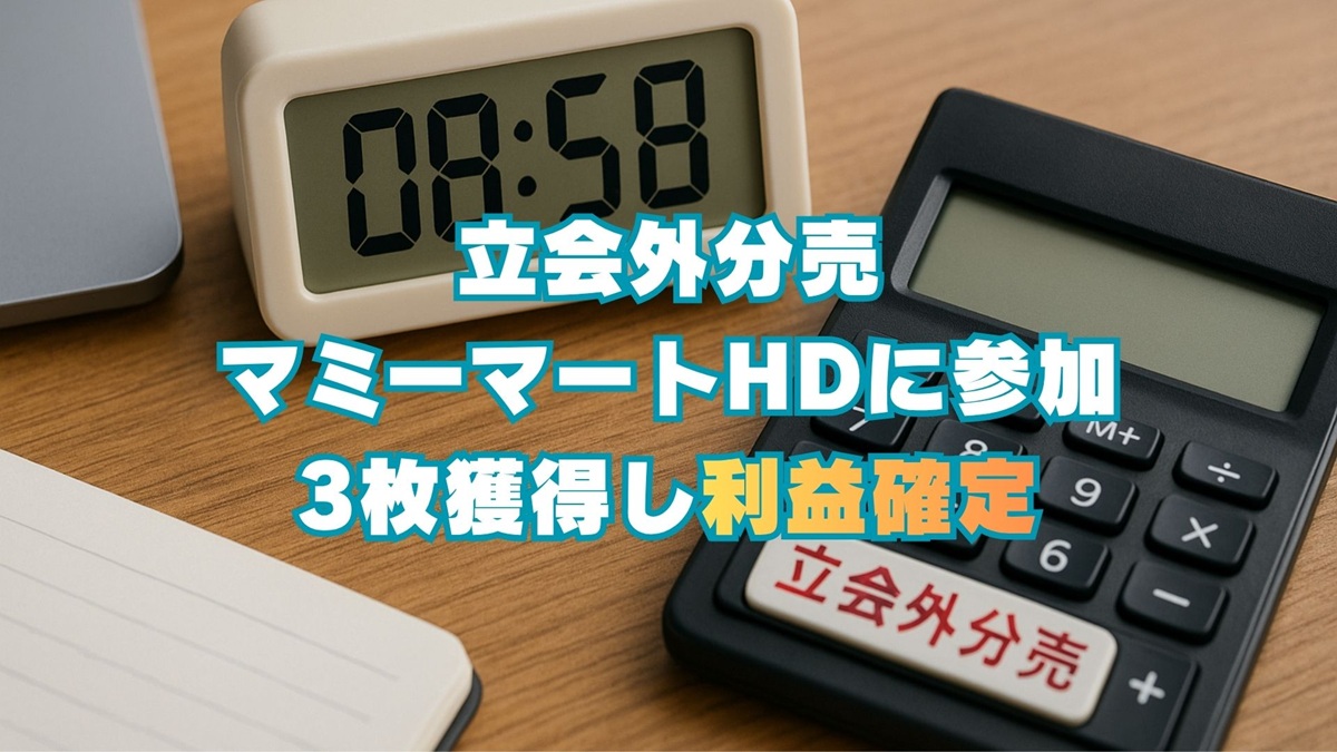 立会外分売マミーマートに参加。3枚獲得し利益確定