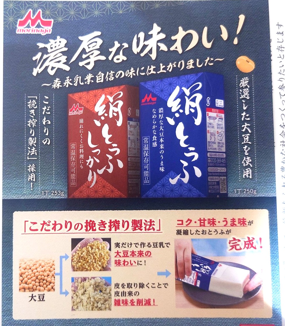 優待内容のメインとなっている「豆腐」について、紹介チラシが入っていました↓