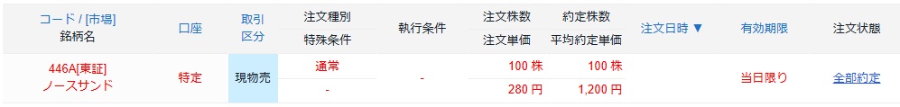 ノースサンド 大和コネクト証券 売却明細ノースサンド 大和コネクト証券 売却明細