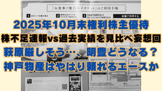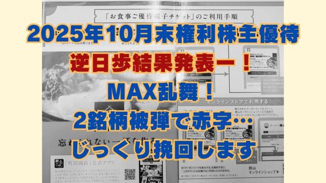 株主優待取得 2025年10月末株主優待権利取得お疲れさまでした。株不足速報で妄想回! 2025年10月29日 jump-fire-man とりあえず退職しちゃいました実録 10月29日は10月末権利付最終日でした。 逆日歩日数は4日。 納得の押し引き、満足な取得は出来たでしょうか? 現渡・品渡 …