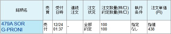 いただいた100株は初値売却し1.1万円の利益確定となりました。