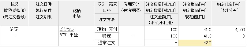 41円で売却、2025年9月に51円で購入していましたので10円分の損失となりました。