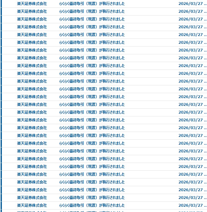 2026年3月末株主優待権利をクロス取引で取得するにあたり、楽天証券らくらく優待取引を本格的に活用してみました。
