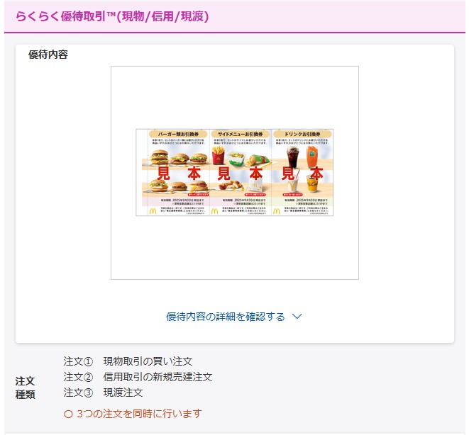 「マクドナルド100株」を「らくらく優待取引」で発注すると…