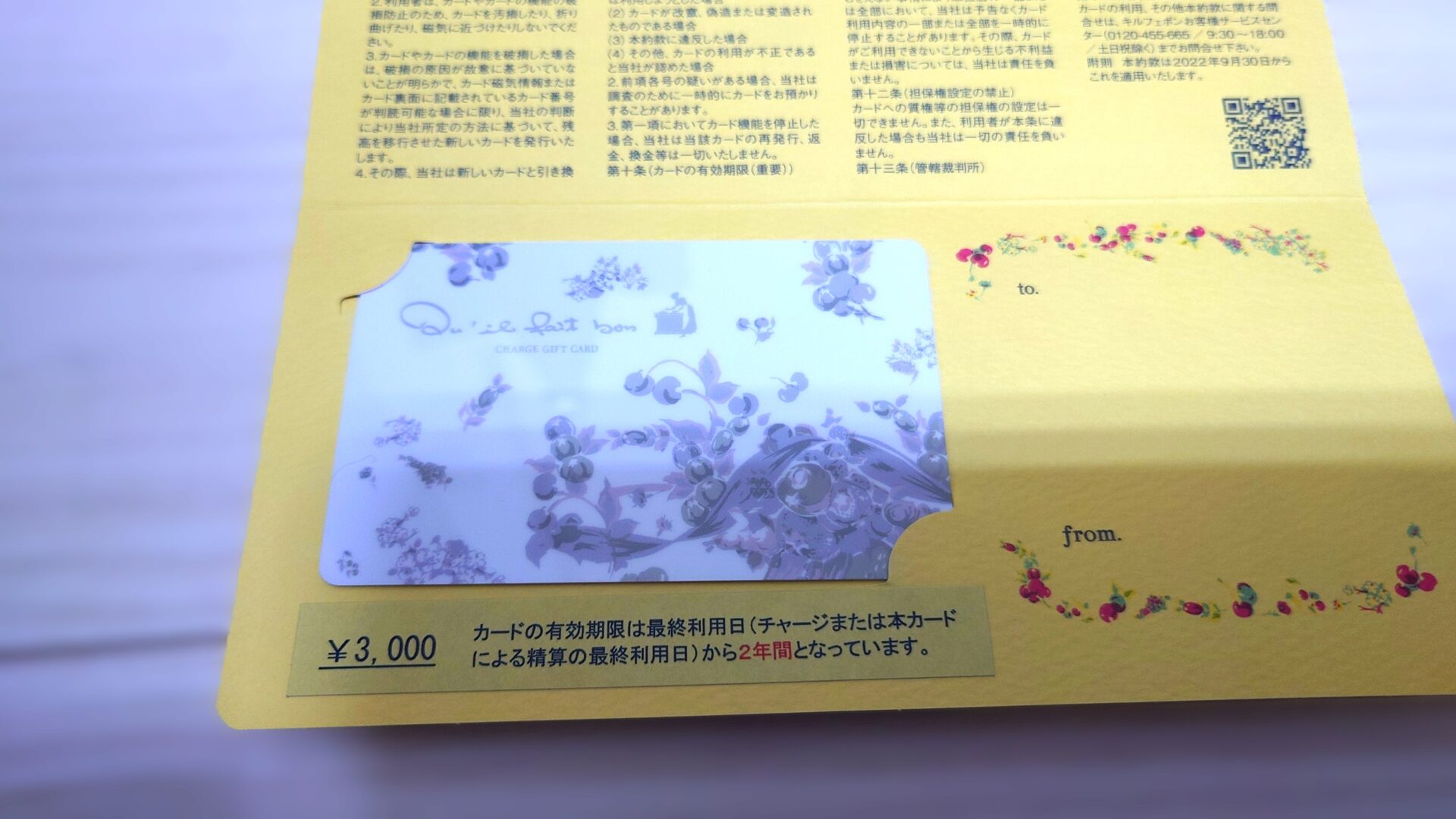 「6942 ソフィアHD」株主優待として、キルフェボンのギフトカードが到着していました。
