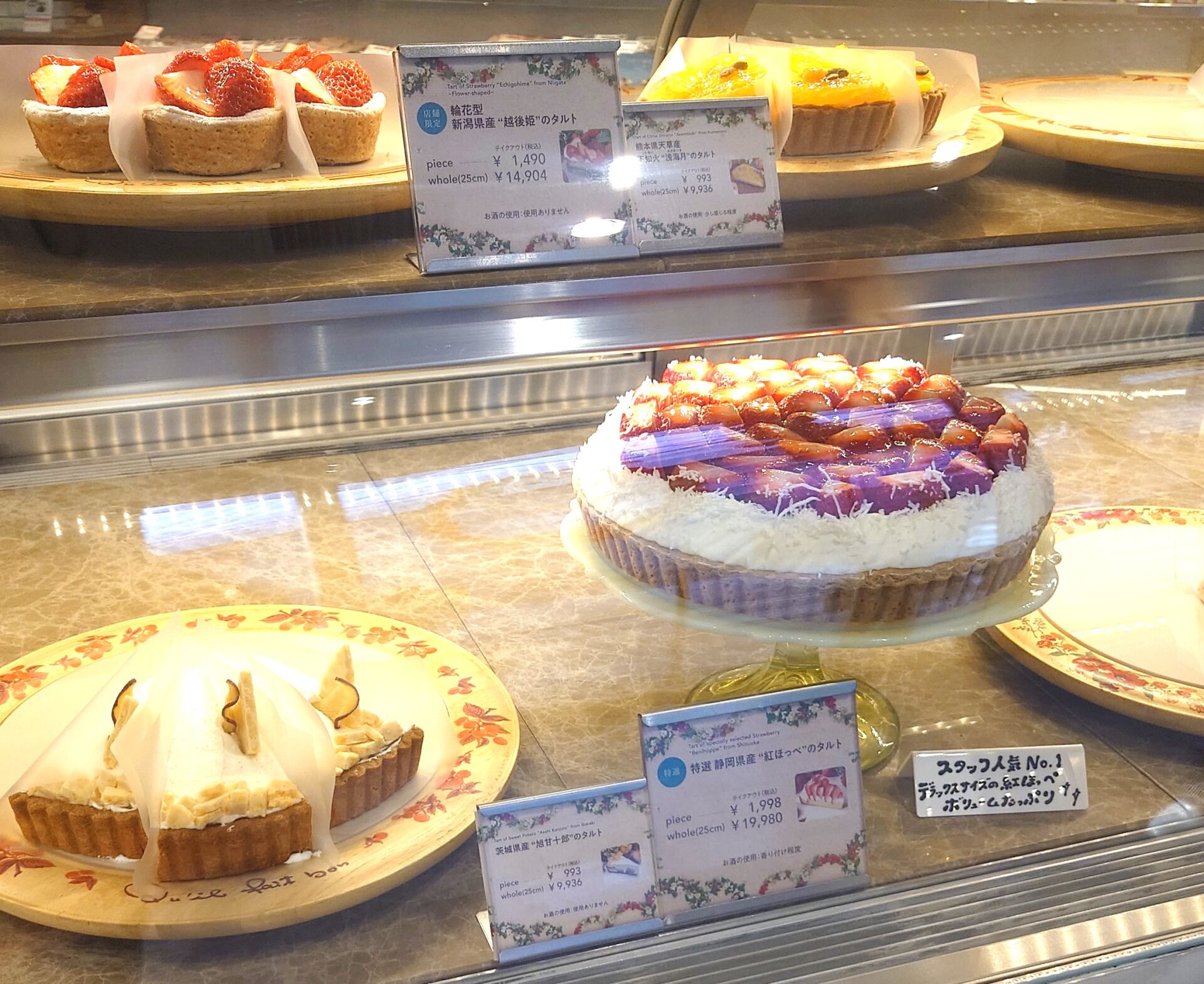 ショーケースに並んだタルトはどれも美味しそうで、計画性なく眺めていると