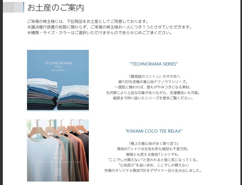招集通知には株主総会参加で素敵なお土産がある!と明記されていました。