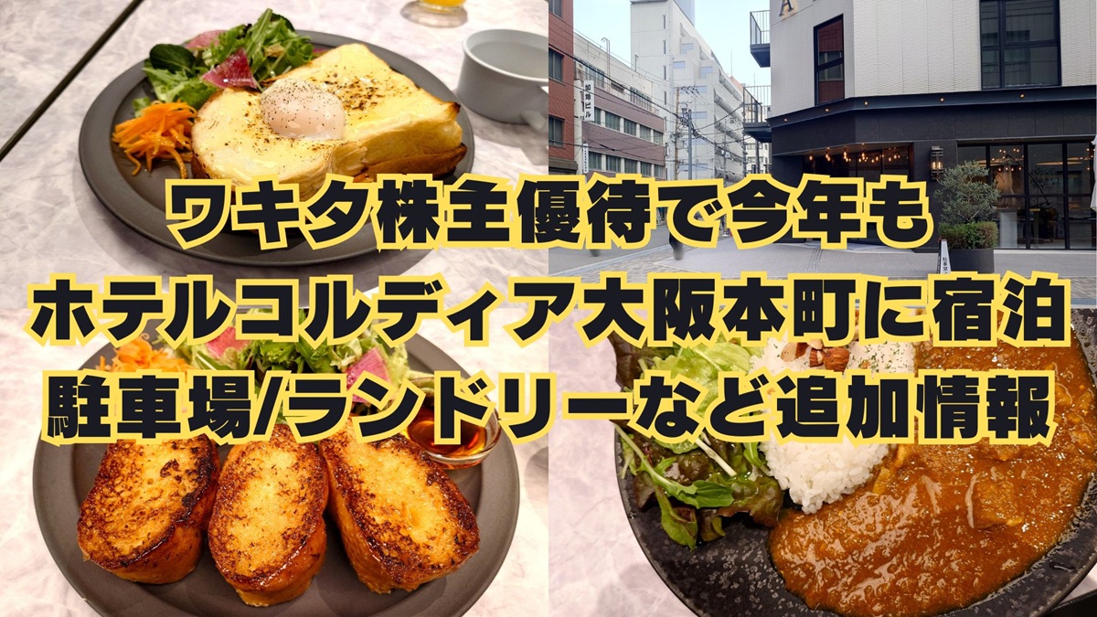 ワキタ株主優待券、ホテルコルディア大阪本町を利用。駐車場情報追加、昨年との差など