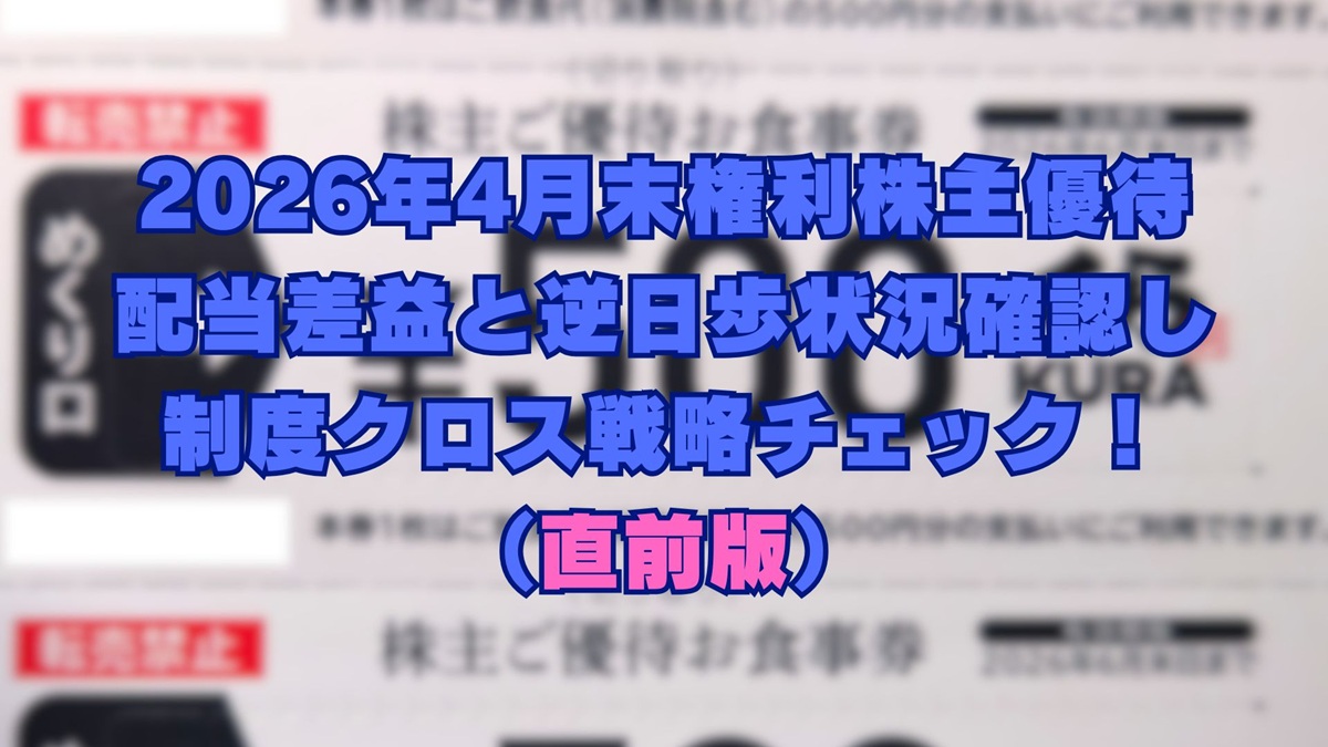 2026年4月末株主優待銘柄の制度クロス、差益コミで戦略チェック!(直前版)