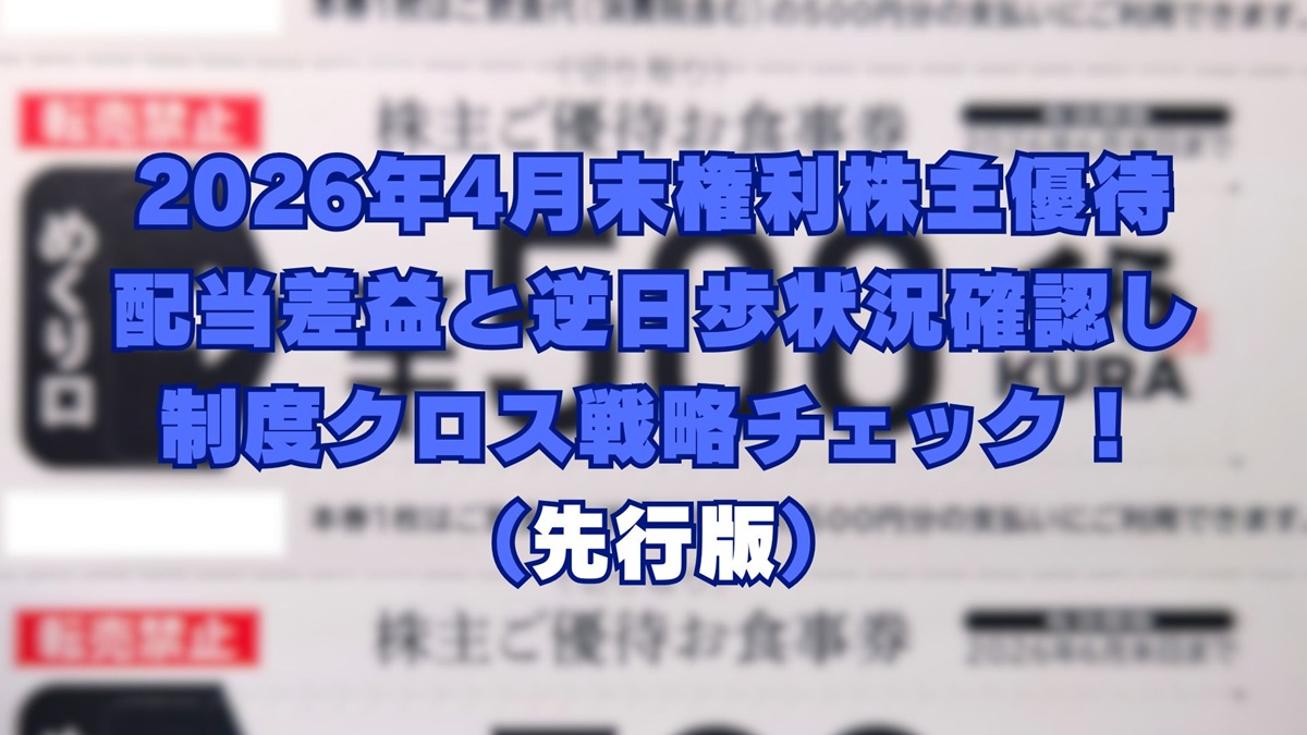 2026年4月末株主優待銘柄の制度クロス、差益コミで戦略チェック!(先行版)